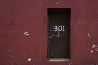 Doorway with number 301 hand-painted onto it and set into well-worn wall
